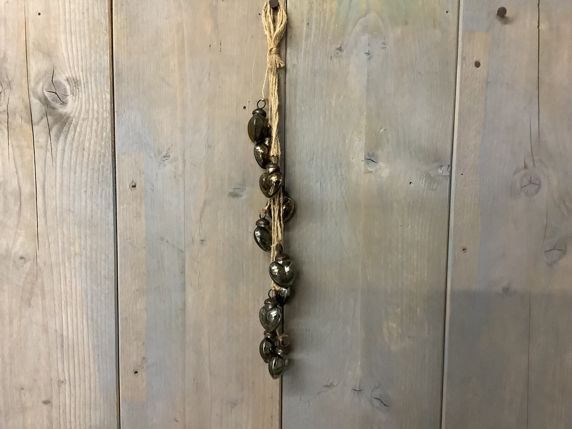 Glazen hartjes aan touw zwart/zilver