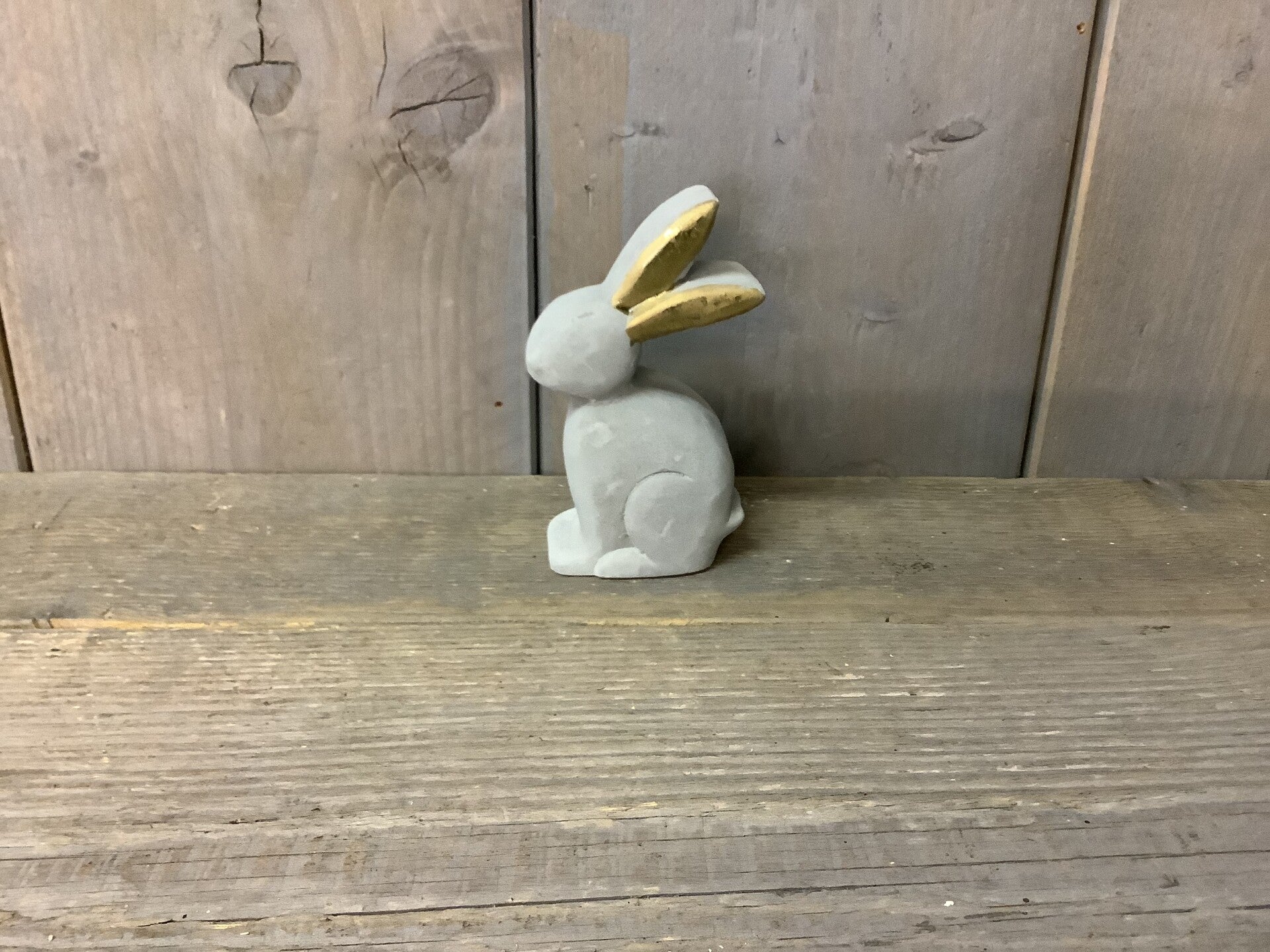Betonnen konijn met gouden oren