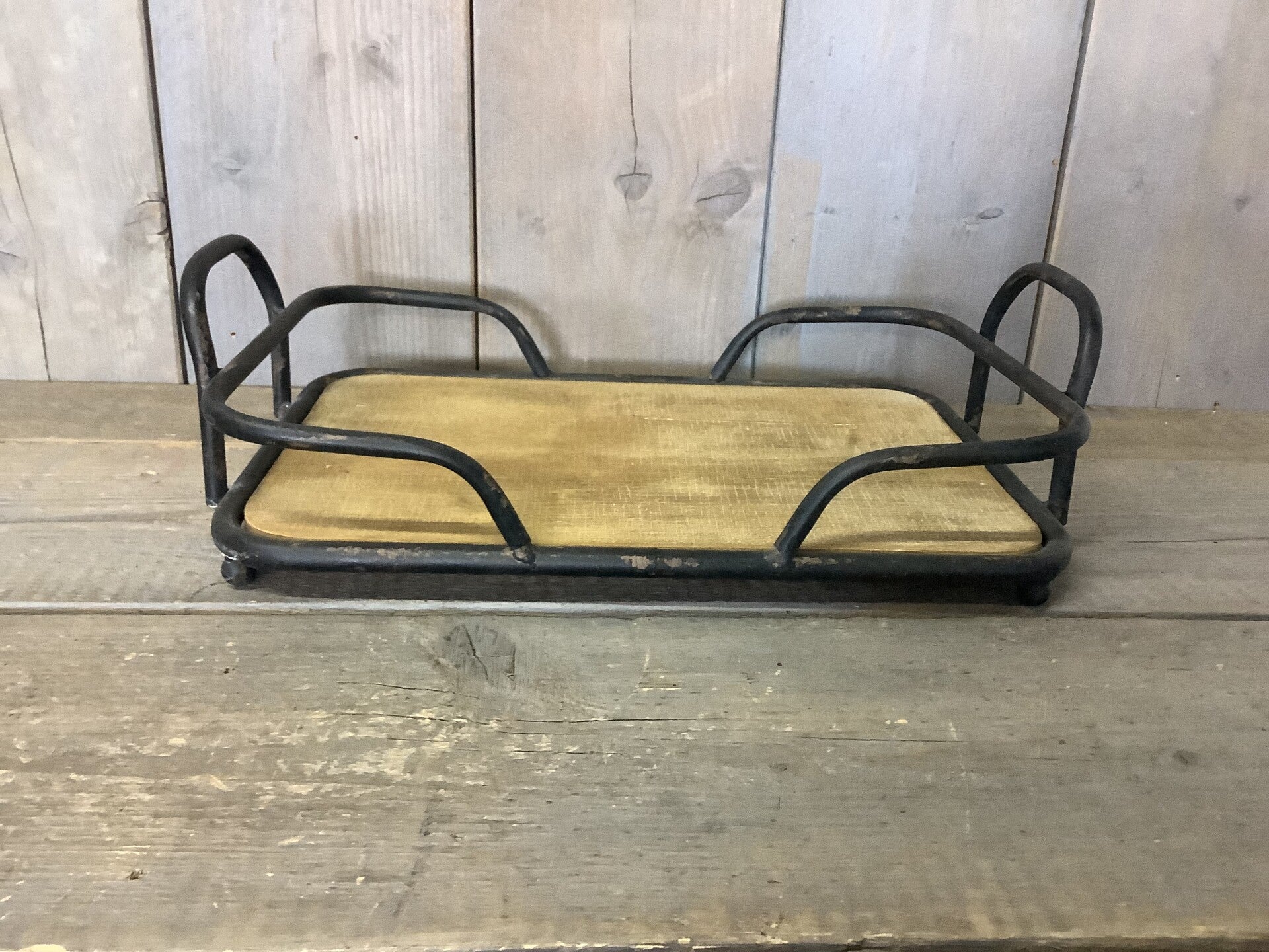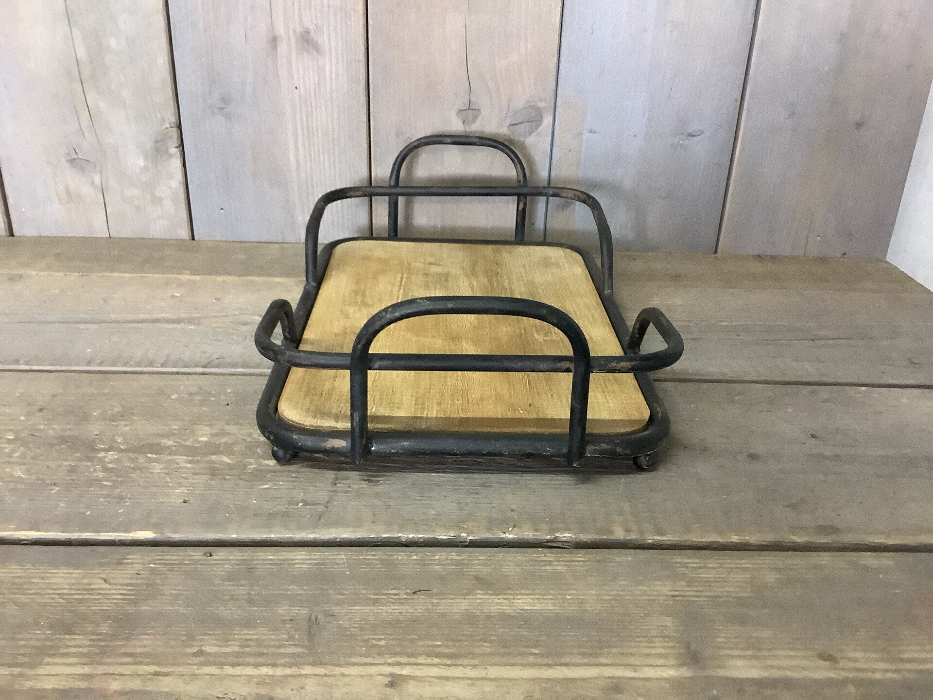Ijzeren dienblad zwart met houten bodem